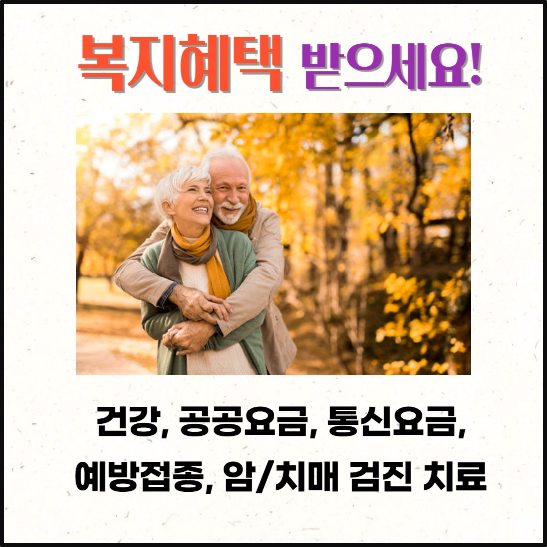 지금 확인하시고 신청하셔서 다양한 의료 지원을 통한 경제적인 지원으로 건강한 노후 생활을 하시기 바랍니다.